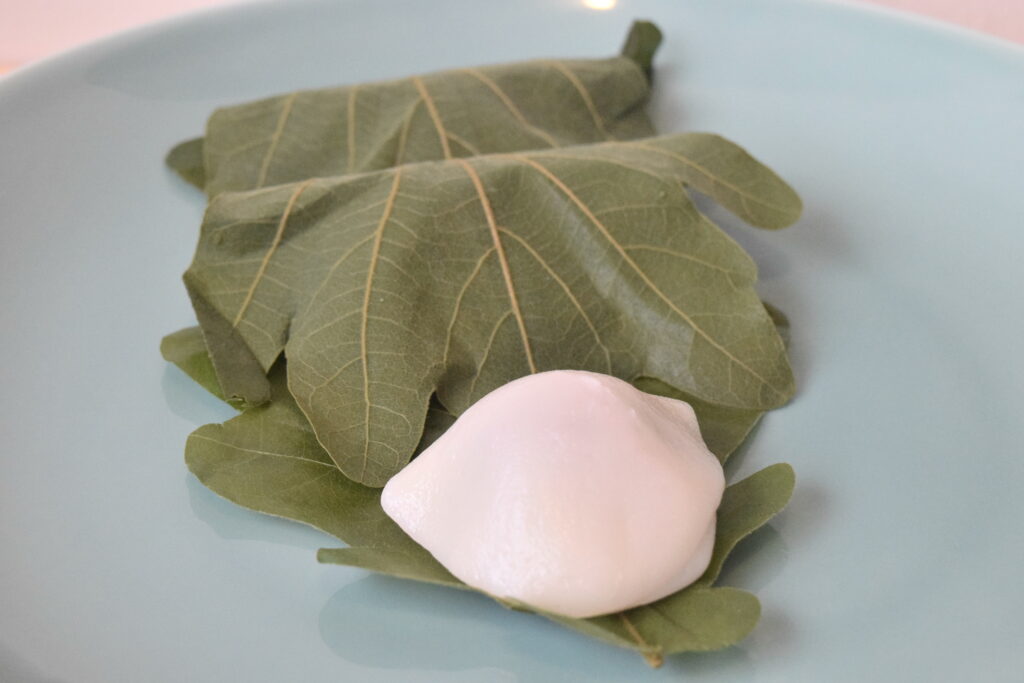 当店の柏餅は、上新粉と羽二重粉を混ぜた歯切れが良くモチモチの食感に拵えております。