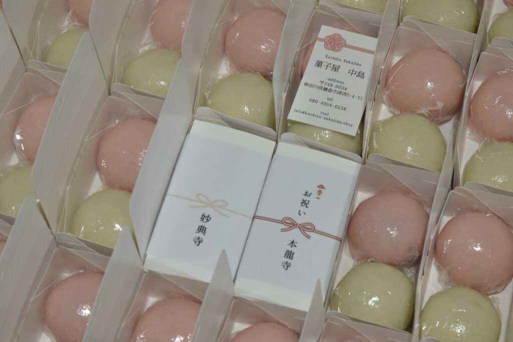 小麦生地の紅白饅頭ですが、ご要望があれば上用饅頭も承ります。